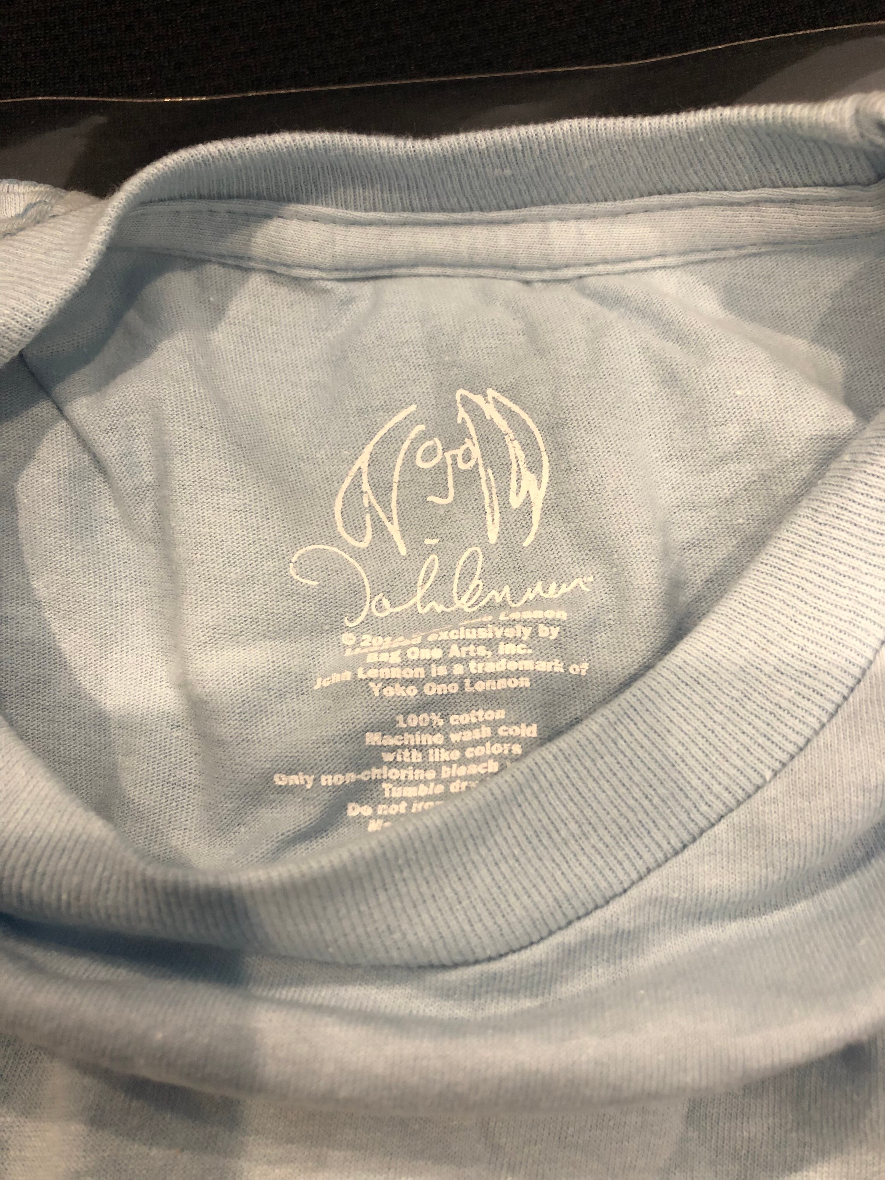 ジョン・レノン自作のジョンとヨーコの似顔絵が可愛らしいTシャツ。