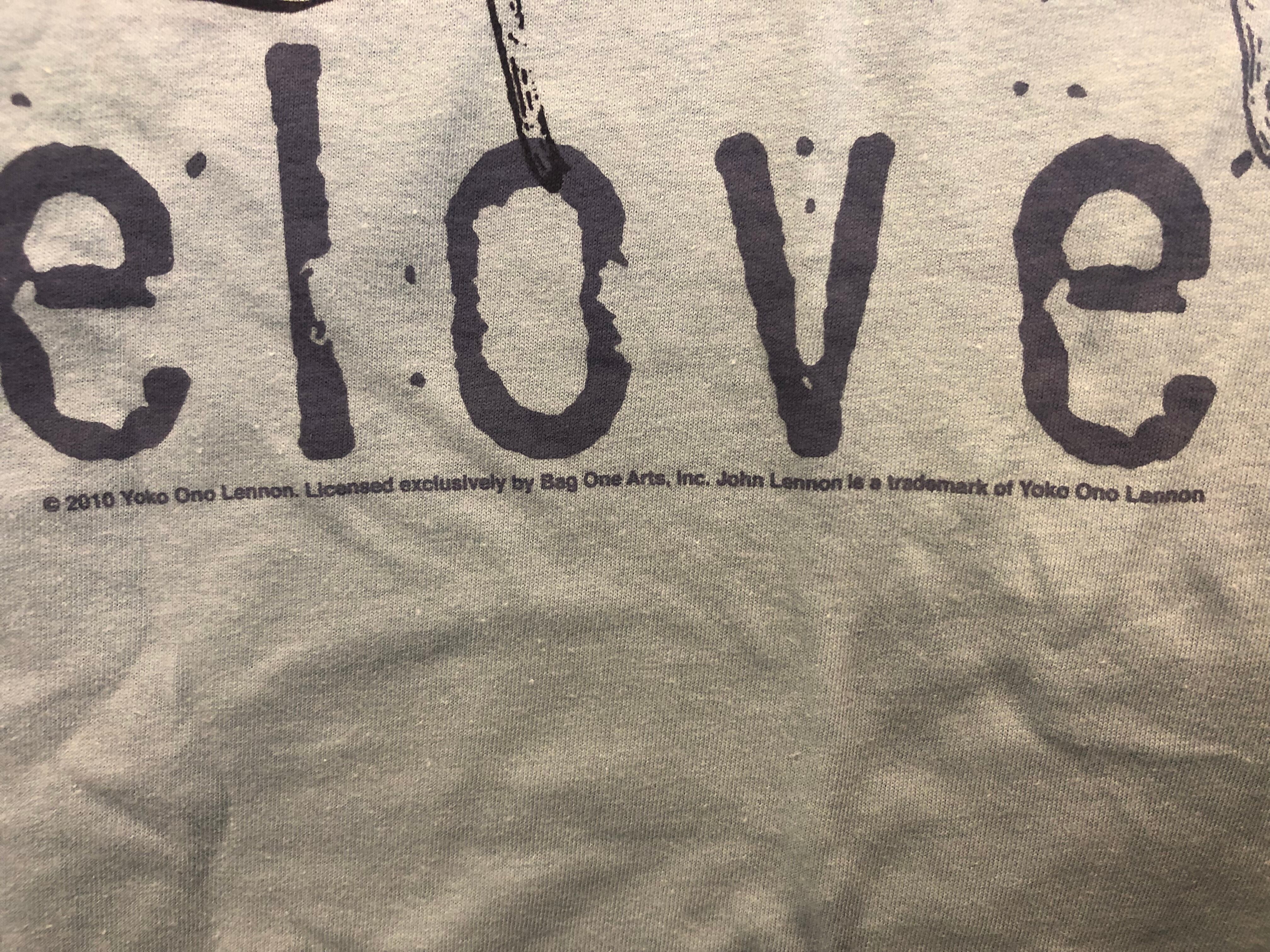 「peace love」のプリントには愛と平和のメッセージが込められている実にジョンらしい一枚。