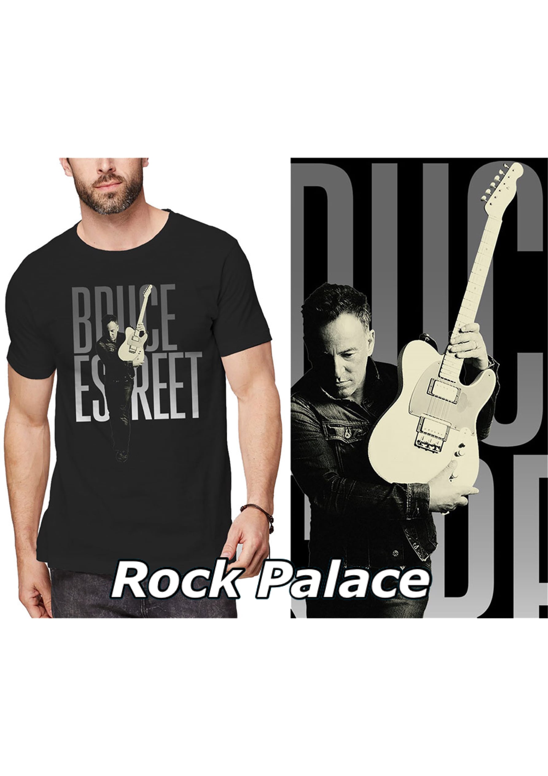 彼のバックバンドを長年務める“E STREET BAND”の「E STREET」の文字とブルースの写真を組み合わせたデザインのTシャツです。