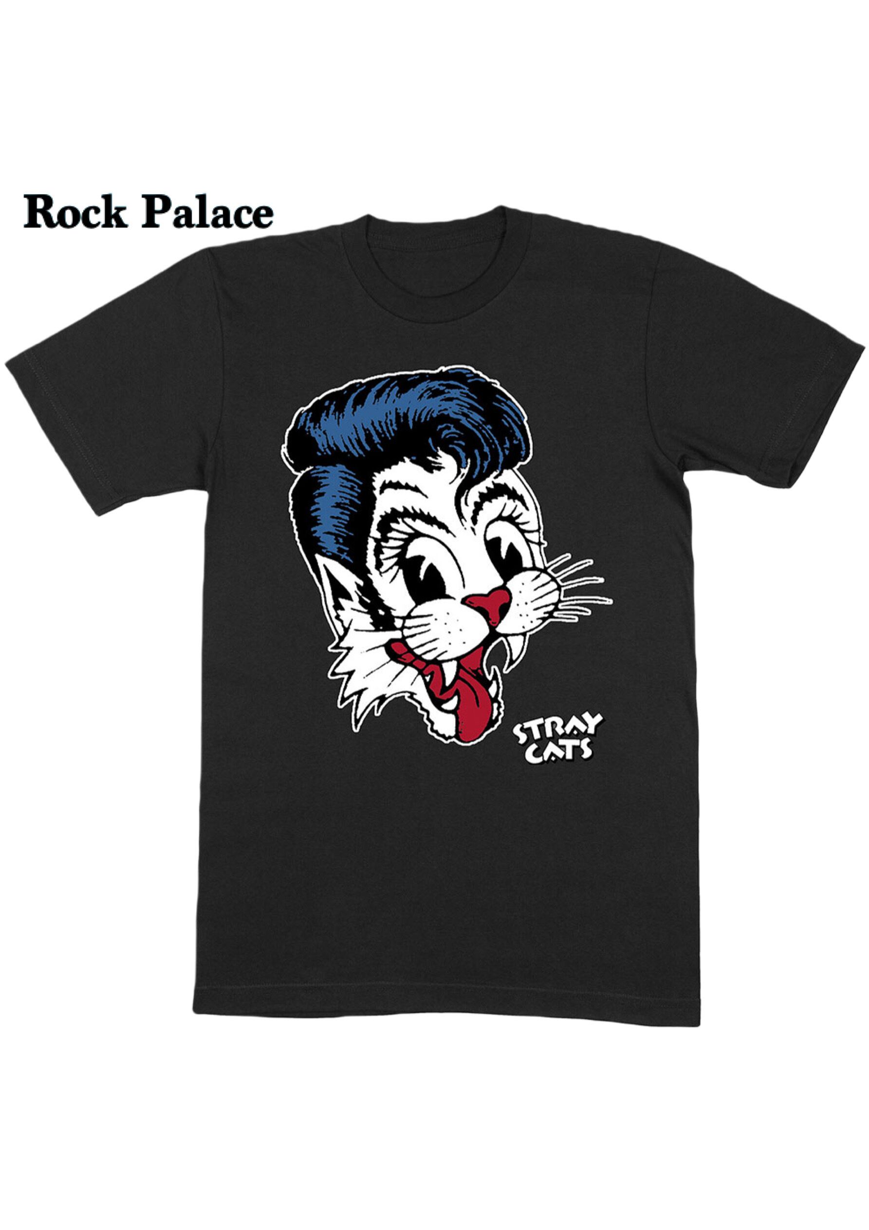 バンドTシャツ ロックTシャツ ユニセックス ネコ ねこ ストレーキャッツ アメカジ キャラクター オールディーズ ロックパレス 半袖 黒T バンドT バンT ロックT オフシャル公認 ライセンスTシャツ ブライアンセッツァー 送料無料 送料込み プチプラ レディース オーバーサイズ