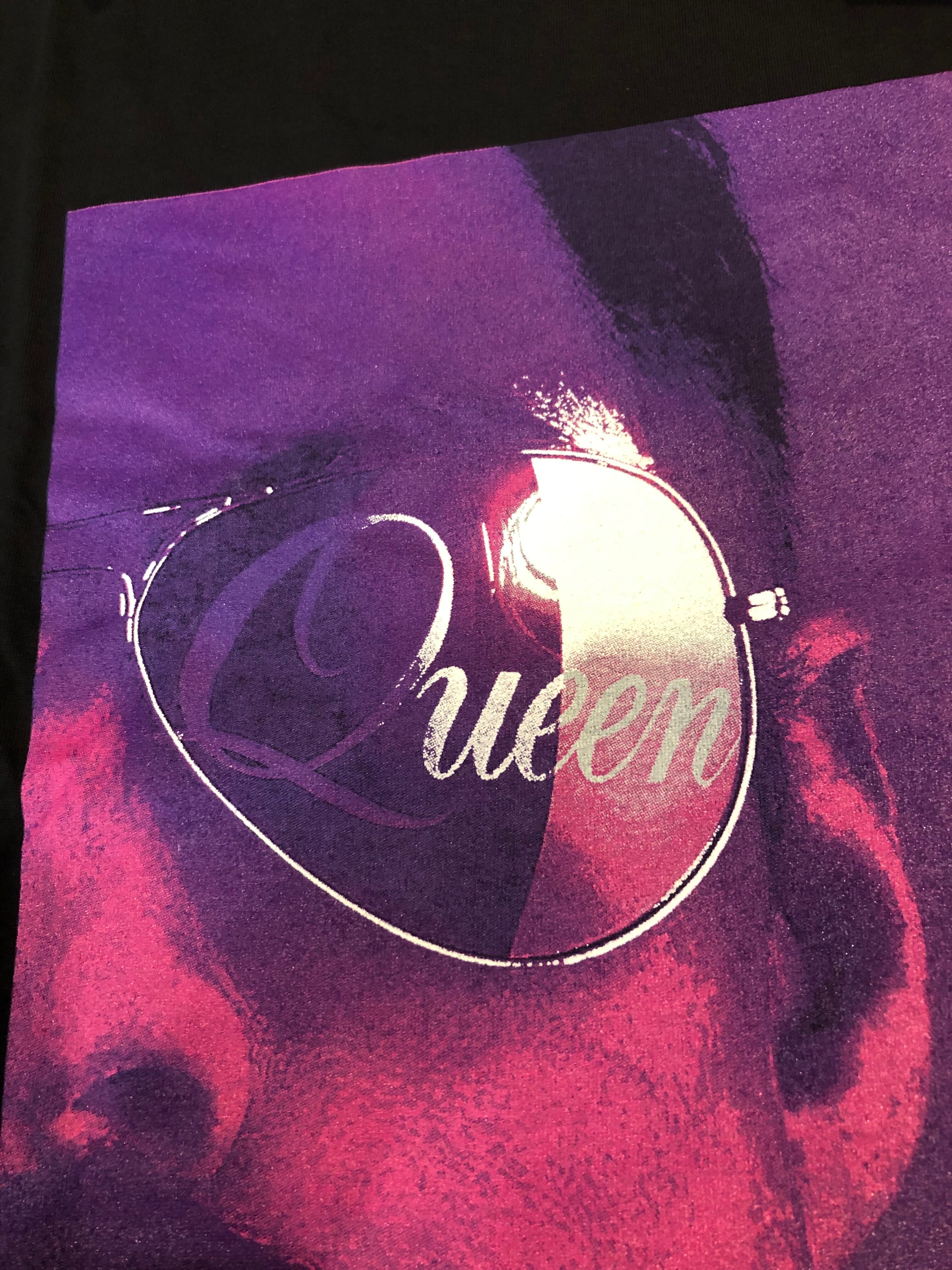 サングラスに「Queen」ロゴを写し込んでいる細かなこだわりが何よりオフィシャルデザインという証。