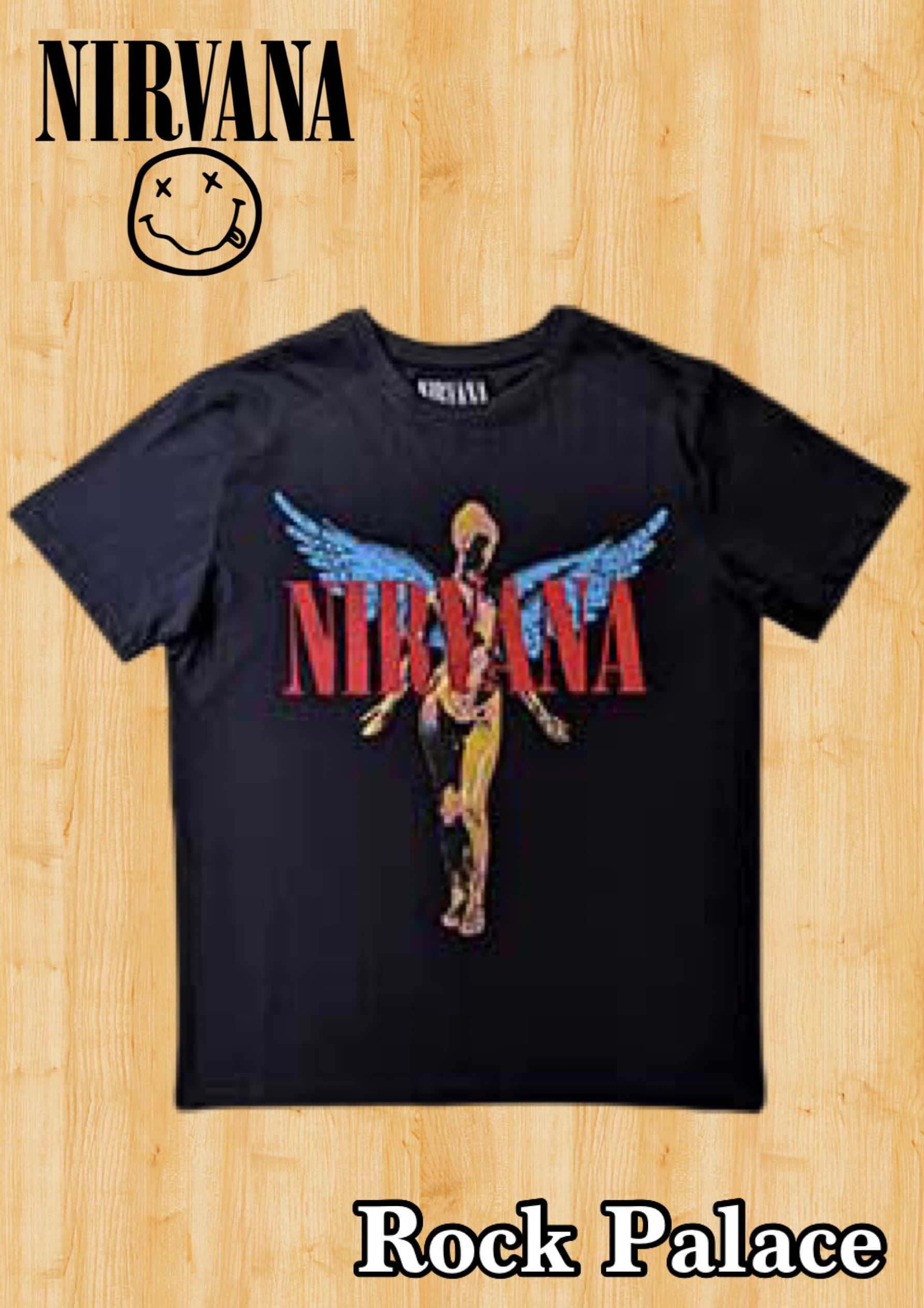 バンドTシャツ ロックTシャツ ユニセックス アメカジ ロックパレス 半袖 インユーテロ ニルバーナ バンT バンドT ロックT ロゴT ニコちゃん 名盤 LP デザイン