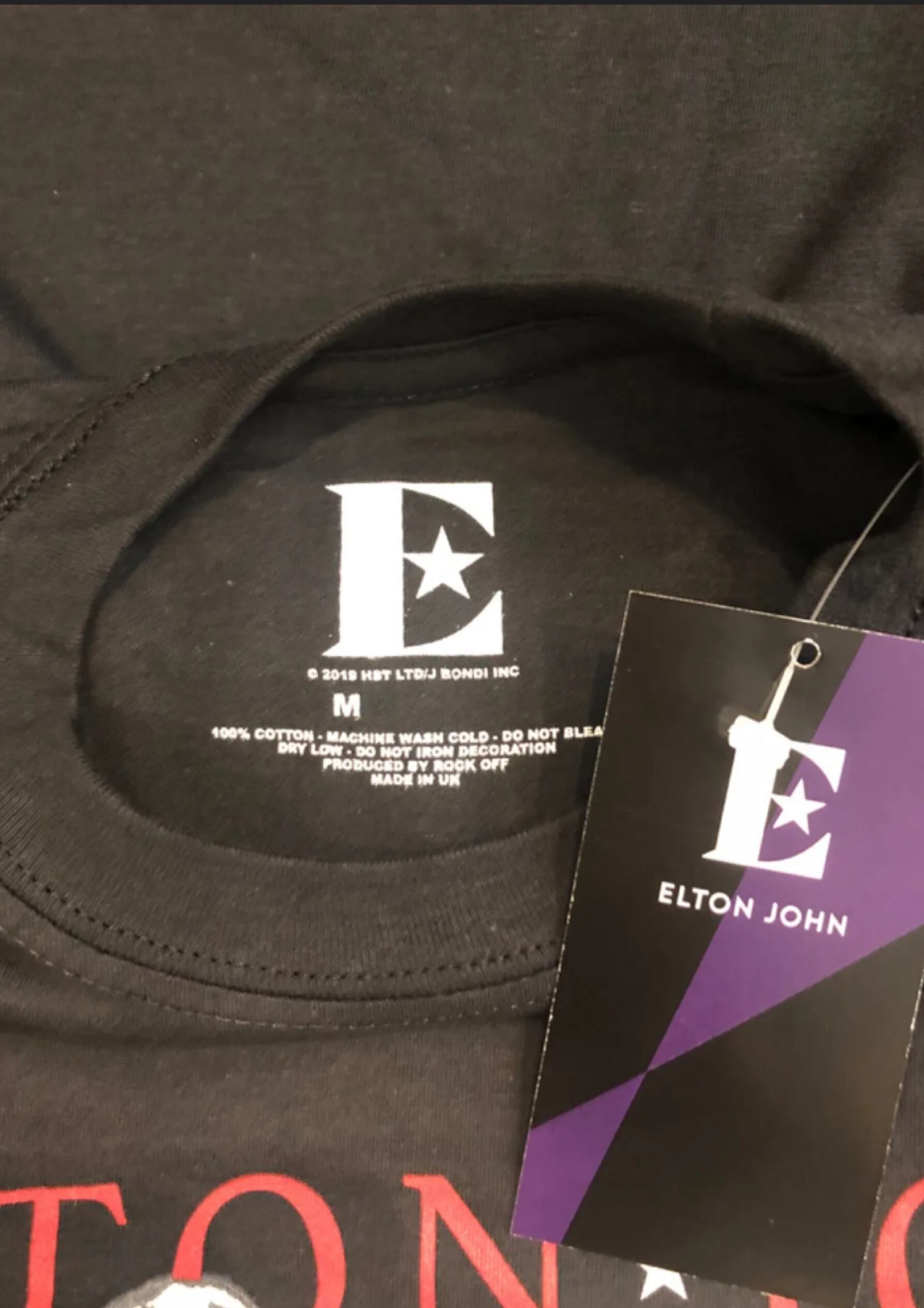 「Your Song~僕の歌は君の歌~」や「クロコダイル•ロック」などで知られている、イギリスが誇るシンガーソングライター"エルトン・ジョン"のTシャツです。